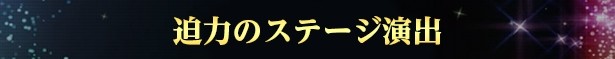 最新の映像装置による3D映像や、圧倒する規模の照明、LED映像装置を駆使して、五感を揺さぶるステージングを演出します。
