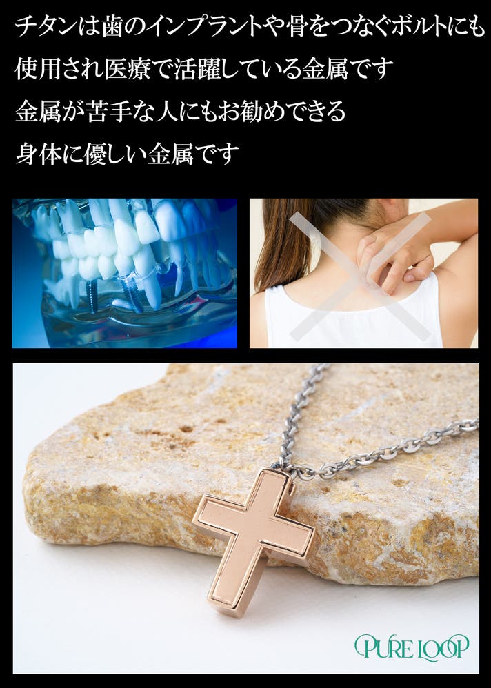 【ペア割32】純チタン磁気ネックレス PURE LOOP クロス