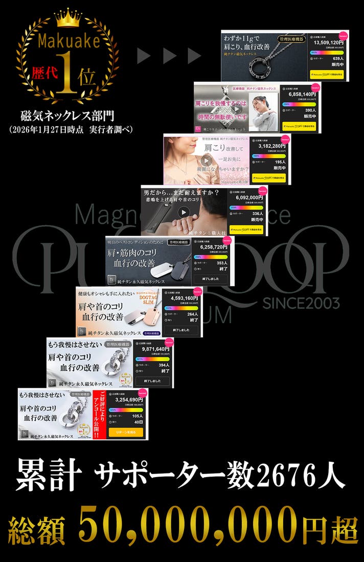 「Makuake(マクアケ)」は、実行者の想いを応援購入によって実現するアタラシイものやサービスのプラットフォームです。このページは、 ファッションカテゴリの 「磁気ネックレスを疑っている貴方に試してほしい! リピート率の高さを実感!」プロジェクト詳細ページです。
