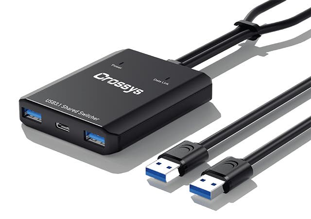 「Crossys」を使えば、2台のPCを1つのマウスとキーボードで操作できるだけでなく、PC間でテキストやファイルなどのデータを転送することも可能!さらに、幅広い用途に使いやすいUSB Type-Cポートを1つ、USB-Aポートを2つ搭載しており、MacBookなどのノートPCのポート不足も解決可能!