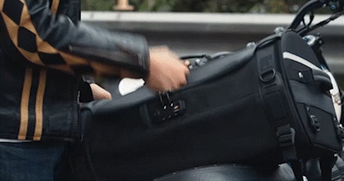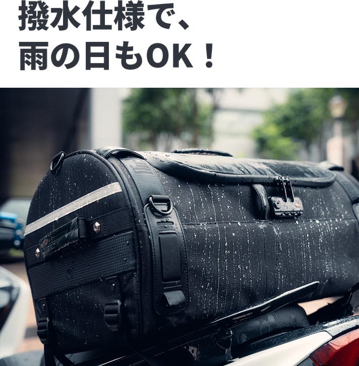 - 【撥水素材を採用】急な雨にも動じないライダー仕様。専用カバー付属で雨から荷物をしっかり守る!