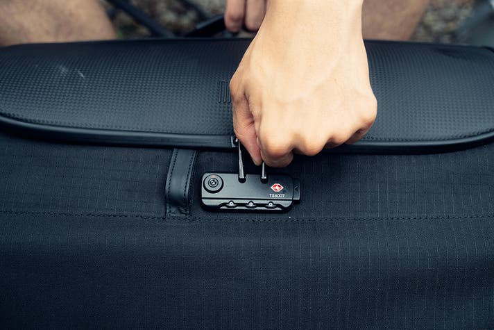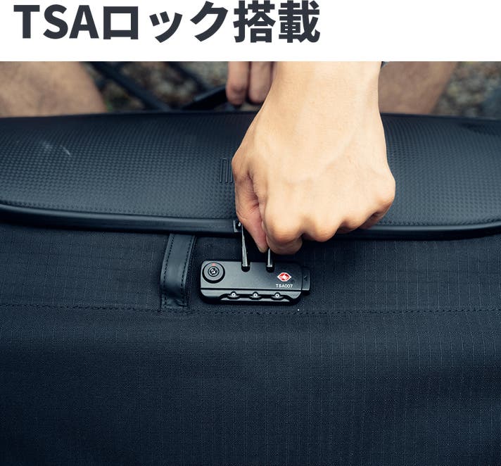 A. バッグのメインジッパーにTSA対応ロックが付いており、旅先や駐輪中の防犯にも最適です。