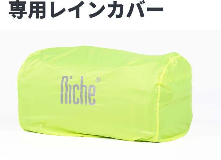 バッグ全体を覆う専用カバーを標準付属。雨量の多い日も荷物をしっかり守ります。