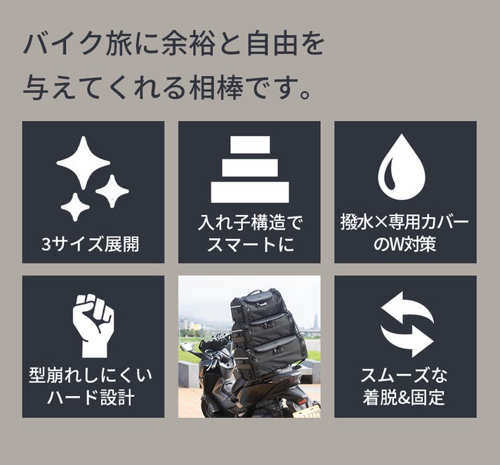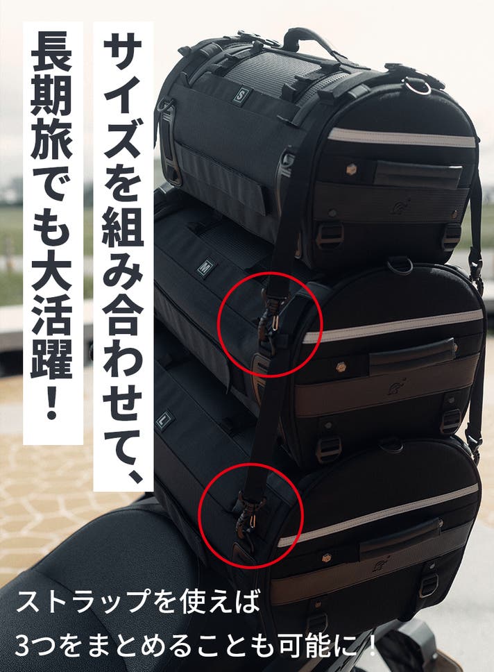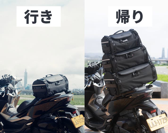 快適なツーリングに。重ね持ちで数日分の荷物にも対応。