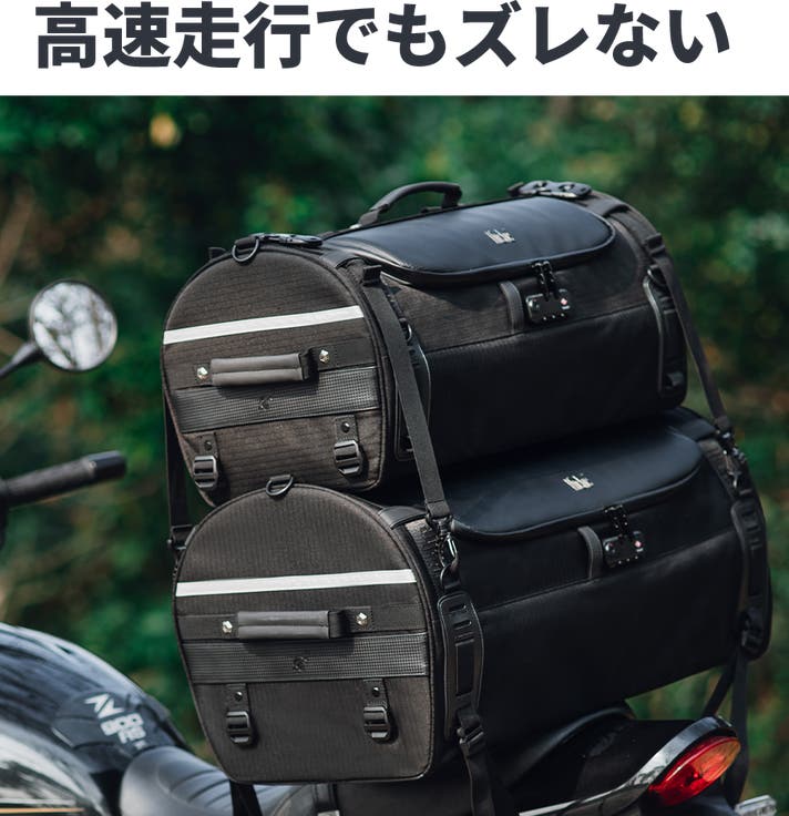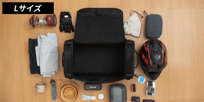 - 【大容量】Lサイズでヘルメット2個もすっぽり入る。補強構造+固定ストラップで悪路も安定走行OK