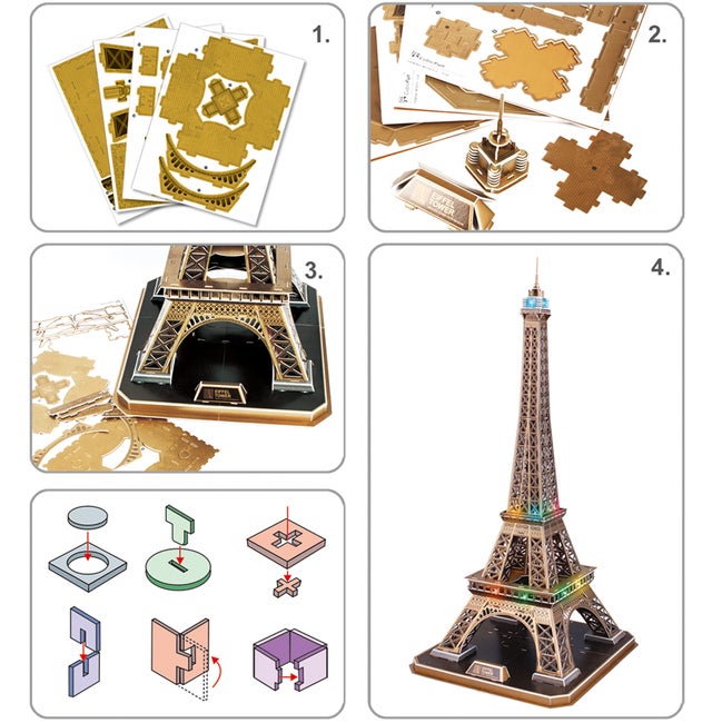 組立ては簡単で接着剤は不要です。パズルのピースは工具なしで簡単に組み立てられるように設計されており、ピースの近くには番号が印刷されています。