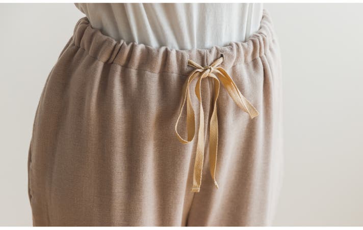 ゴムなので締め付け感が少なく、また、ひもをキュッと結べばウエストの細い方もずり落ちが気になりません。