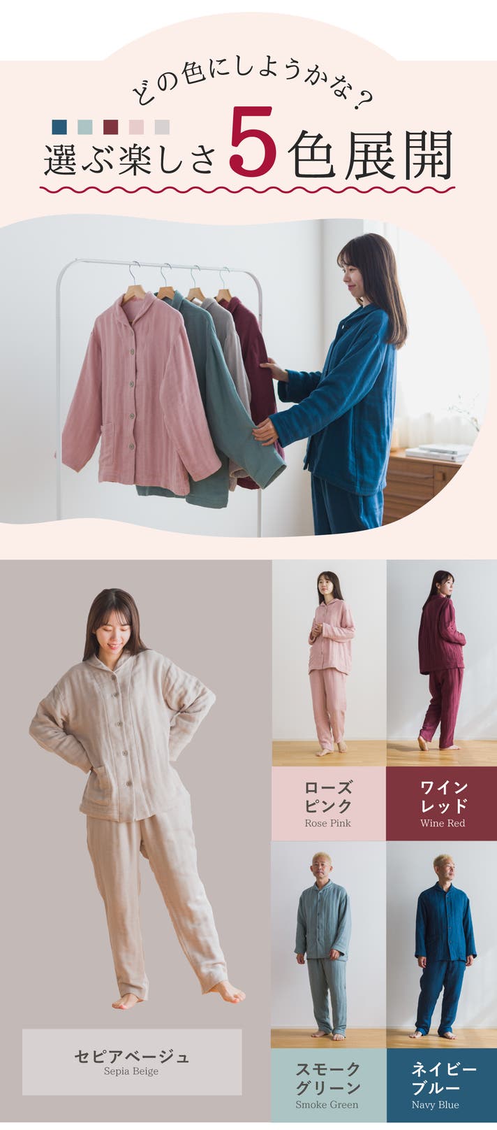 一年中ガーゼを使いたい!というガーゼ好きさんにおすすめの、ぬくもりのあるガーゼパジャマです。