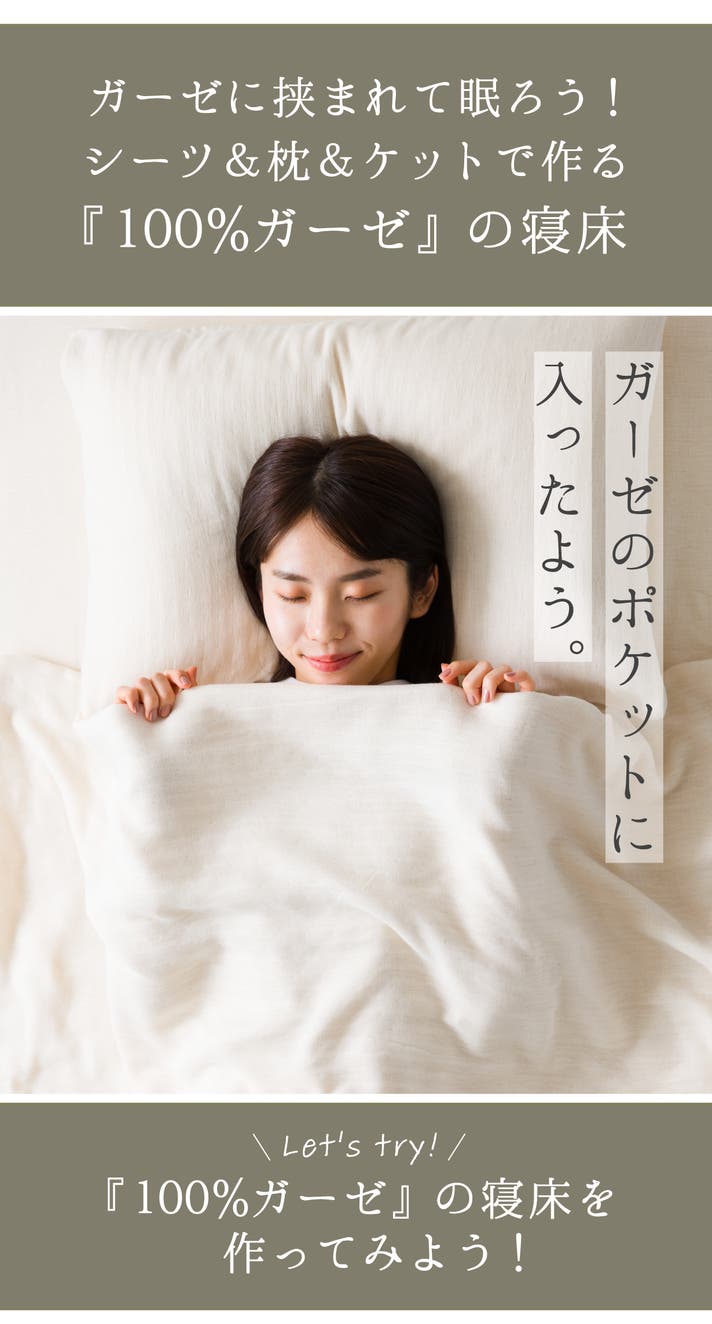 - 三河産。ふっくら柔らかな肌ざわり。綿100%天然素材の5重ガーゼを使用したシーツと枕カバー。