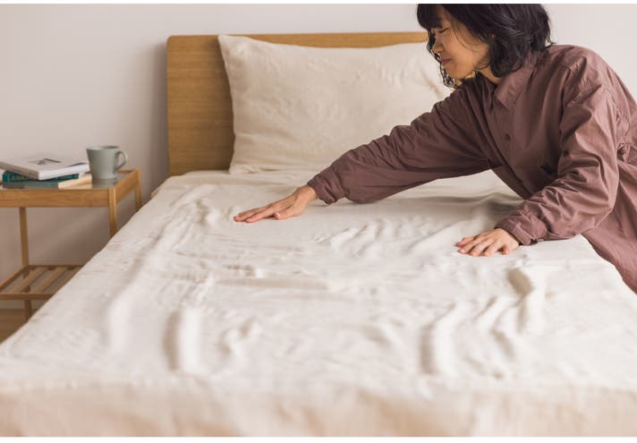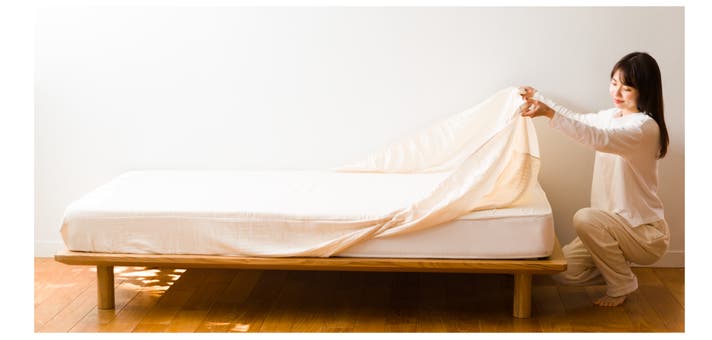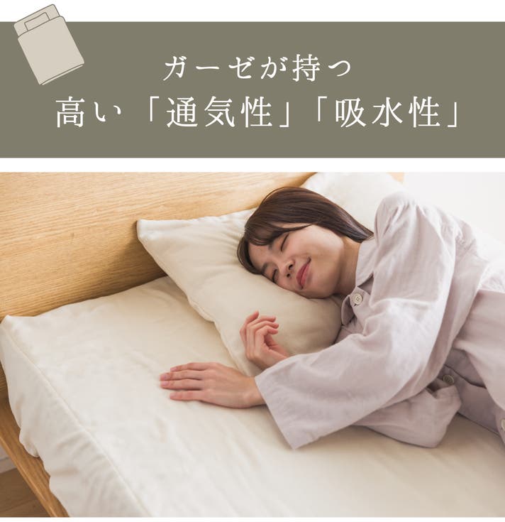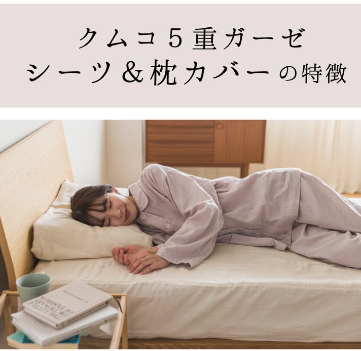 ガーゼは医療の現場でも使われるほど通気性・吸水性が高い素材。クムコのシーツ&枕カバーはそんなガーゼ生地を5枚も重ねています。