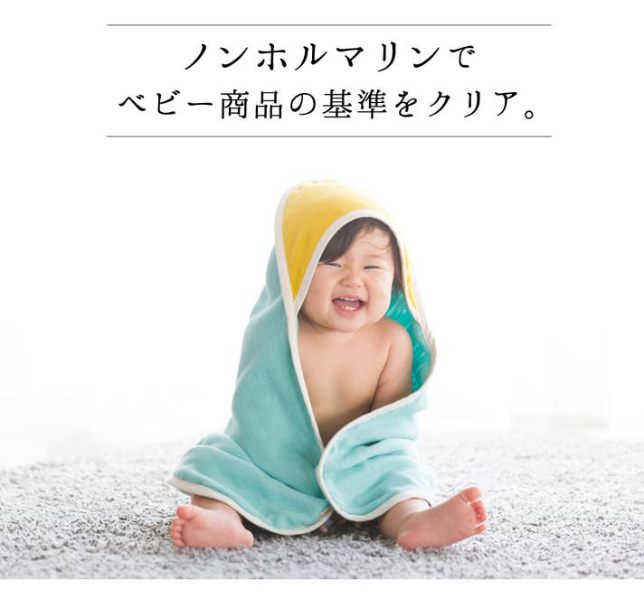 クムコガーゼは、特にお肌の繊細な生後24ケ月以内の赤ちゃんでも使える「ノンホルマリン」の製品です。
