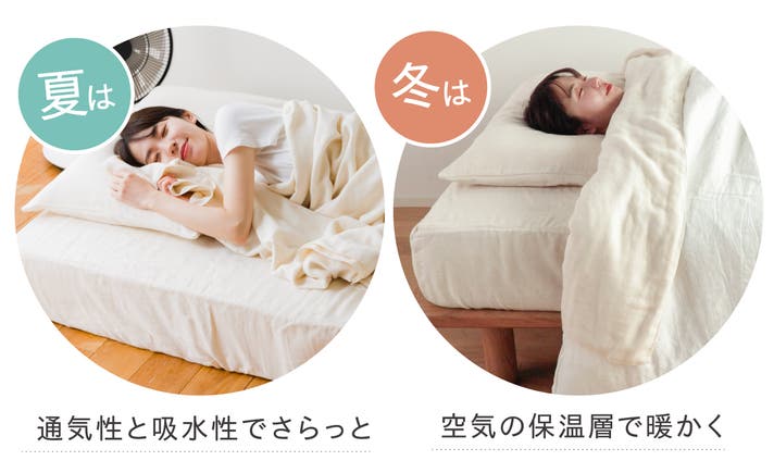 クムコガーゼは一年中快適にお使いいただけるのも魅力。