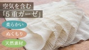 三河伝統の技術を惜しみなく使った「5重ガーゼ」。ふっくら柔らかく、洗濯するとボリュームアップしてさらに柔らかくなります。