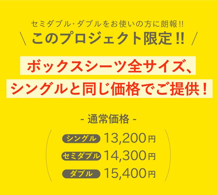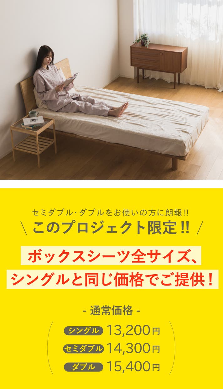 ・ボックスシーツは、本プロジェクトのリターンに限り、全サイズ同じ価格で提供させていただきます。