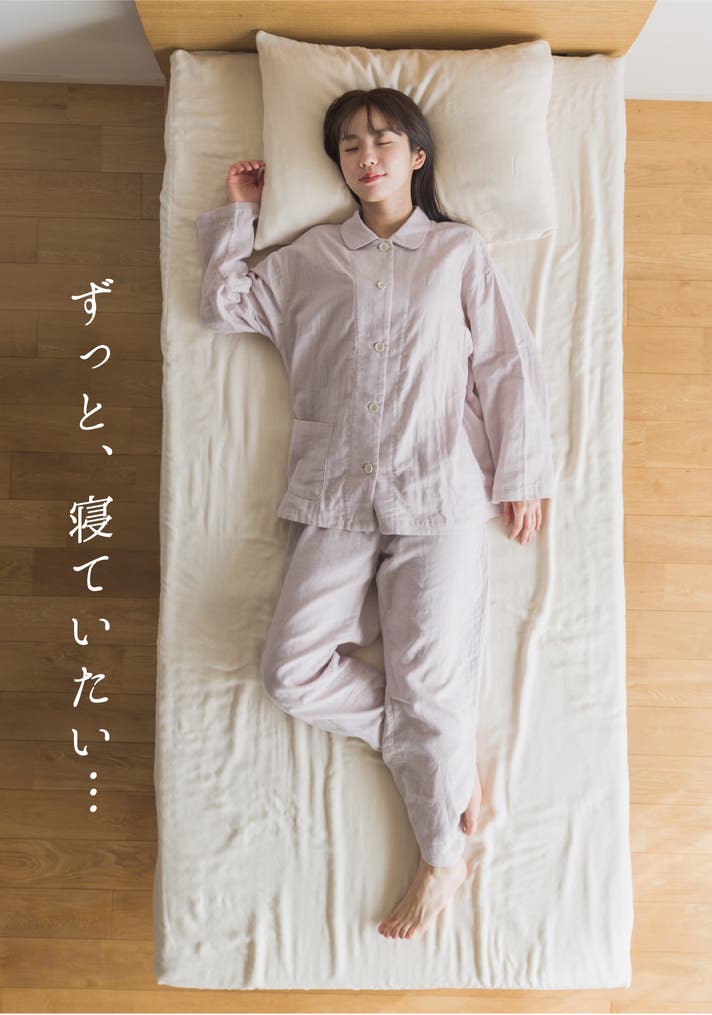 重なったガーゼ生地の間に空気をたっぷり含むから、保温性が高く、ほどよいぬくもりを感じられます。