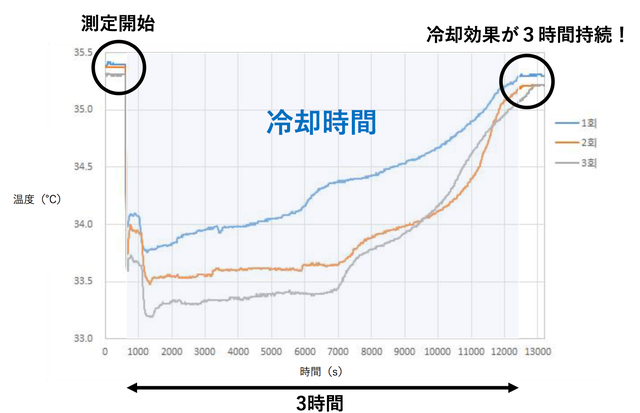 その結果、冷却効果が3時間持続することが明らかになりました。