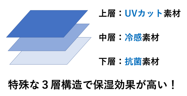 また上層は「UVカット素材」、直接肌に触れる下層は「抗菌素材」を使用しているため肌にも優しいです。