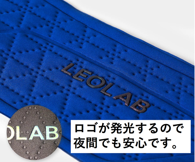 ロゴに反射素材を使用しているので夜間になると発光します。