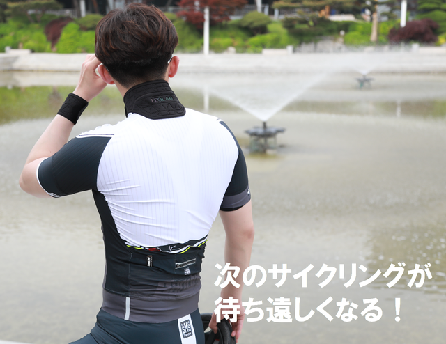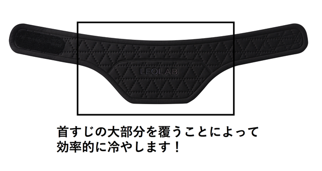 一般的に効率的に冷やすことができると言われている首すじの大部分を覆うことにより、冷却効果を最大限に引き出す形状となっています。