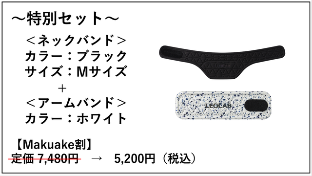 またマクアケ特別セットとしてネックバンドとアームバンドのお得なセットもクラウドファンディングさせて頂きます