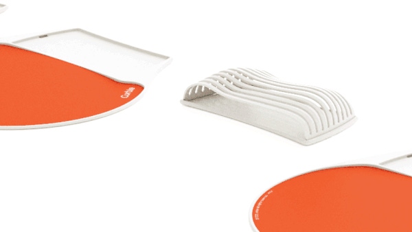 手首を支えるマウスパッドは様々ありますが、一般的なウレタン素材などは圧縮され時間が経つと硬く感じたりもします。そこでカーブルマウスパッドはアーチ状のサポートラインを変形させて手首への圧力を吸収する構造を開発しました。