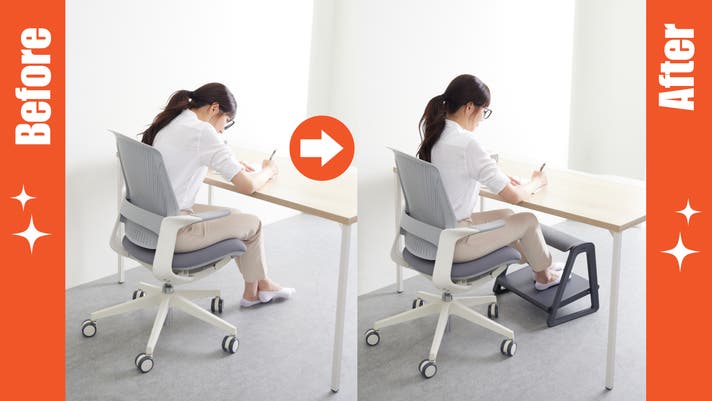 足元のほんの少しの不快感を解消し、集中環境と姿勢を同時にサポートする新しいタイプのフットレストです。