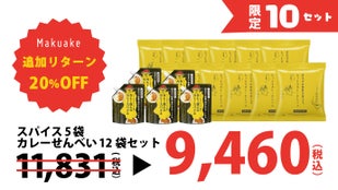 [一般販売予定価格 11,831円(カレー魔人のカレースパイス:6,000円、おなかの脂肪を減らす元祖しっとりカレーせんべい5,831円)の20%OFF]