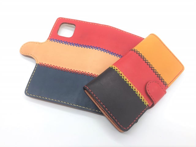 手帳型スマートフォンケース本体は全ての箇所ミシン縫製でなく、手縫いにて製作させて頂きます。