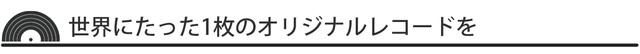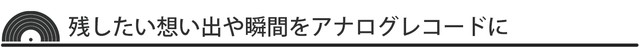 バンド仲間と録音した音楽。愛する娘のピアノ演奏。新婚旅行で行った海の音。そして大切な人へ届けるメッセージ。残したい音源と画像をジャケット付きのアナログレコードに。あなたのその瞬間をオリジナル・レコードに刻んでみませんか?
