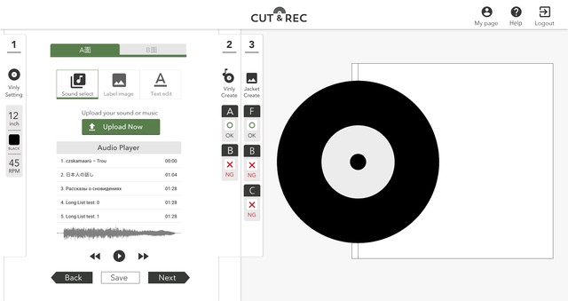 『CUT&REC(カット・アンド・レック)』は、世界に1枚だけのオリジナル・レコードをオンラインで作成できるダブプレート・サービスです。音源と画像さえあれば、誰でも1枚からジャケット付きのアナログレコードを作ることができます