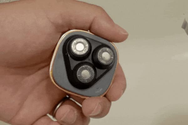 クッション性のある三枚刃の独立回転ヘッドが顔のいかなる凹凸にフィットし、スピーディかつやさしく剃り上げます。