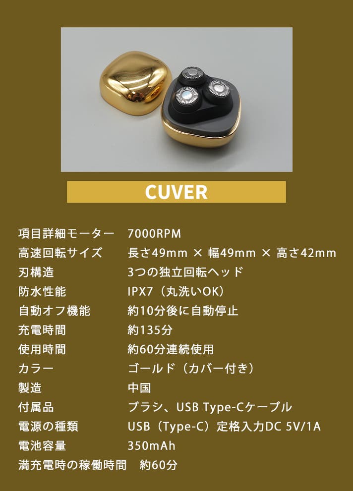 超小型、超軽量かつ高性能の携帯シェーバー「CUVER」。