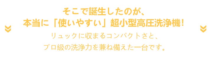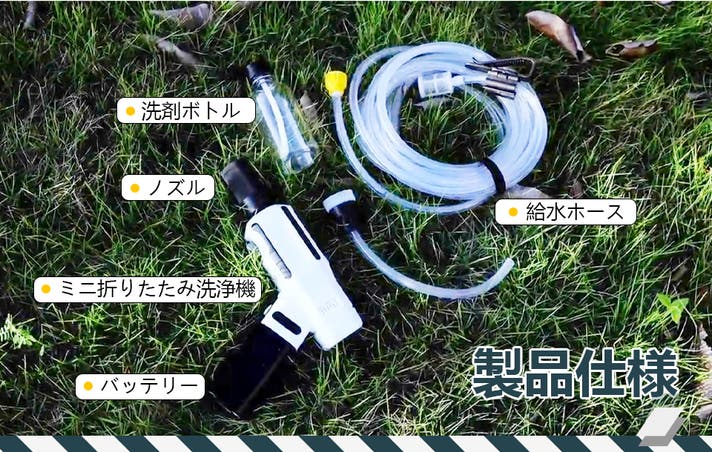 そんな思いを抱えていたある日、キャンプに出かけたときに気付いたんです。市販のコードレス洗浄機って、「パワーが物足りないもの」か「パワーがあっても大きすぎて持ち運べないもの」かのどちらかしかないって。