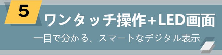 さらにLED液晶画面には、モード、バッテリー残量、充電状態が表示されるので、使用中も一目瞭然。不安なく使える、直感的な操作を実現した設計です。