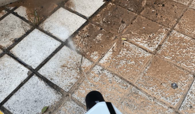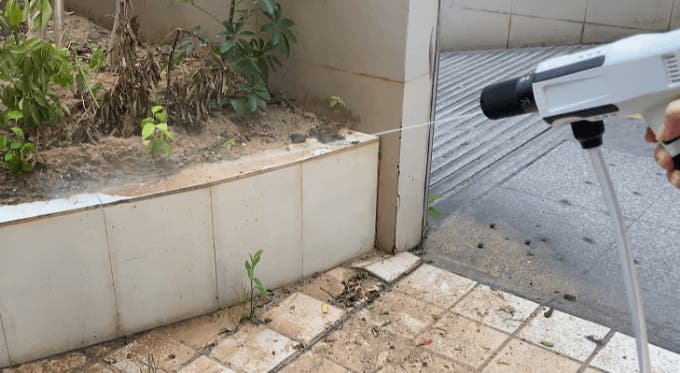 車の油汚れ、タイヤの泥、さらに床のタイル目地に生えたしつこいコケまで、すべてピカピカに洗い流せます。