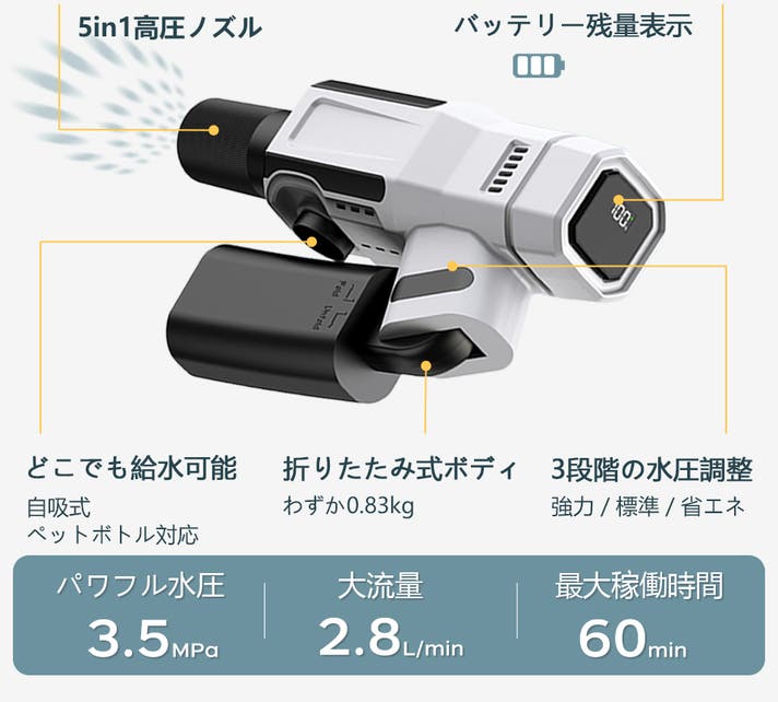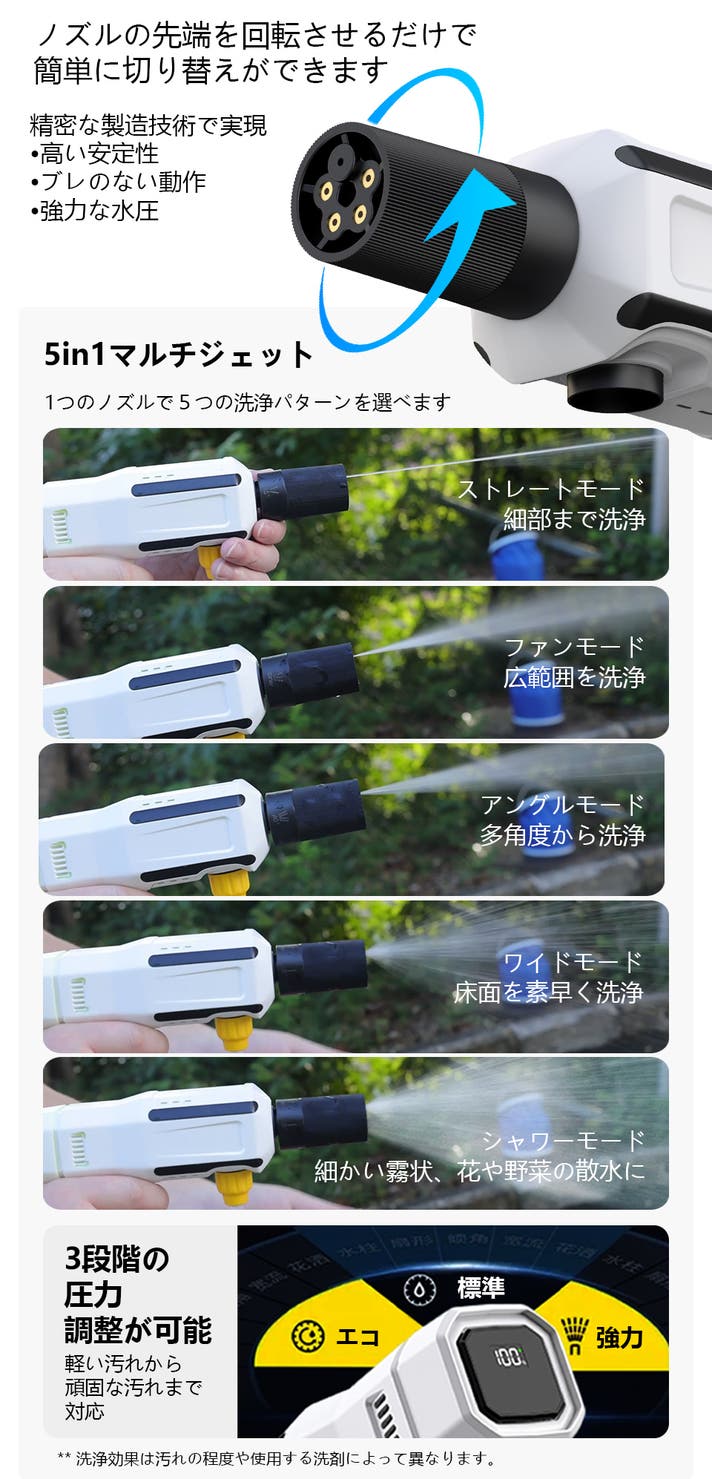 - 【パワフルな水圧】高圧水流で、頑固な汚れも一瞬でピカピカ。洗浄時間や労力も大幅カットできます!