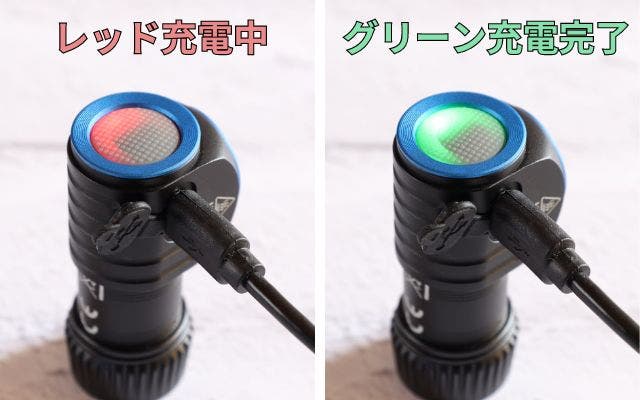 本体には充電ポートが内蔵。充電の度に電池を取り出す必要がなく簡単に充電。充電中は赤色が点灯、充電完了は緑色に変わるのでわかりやすい。