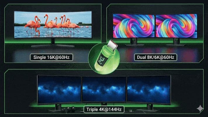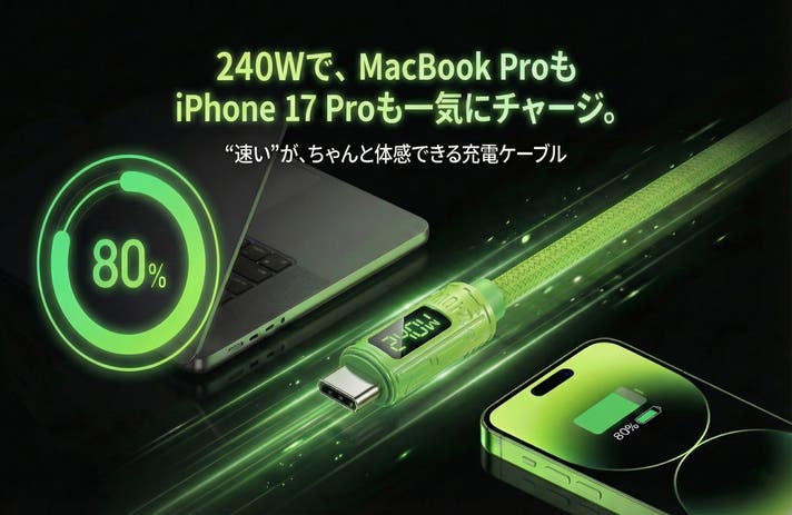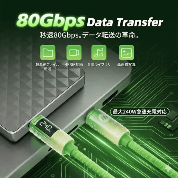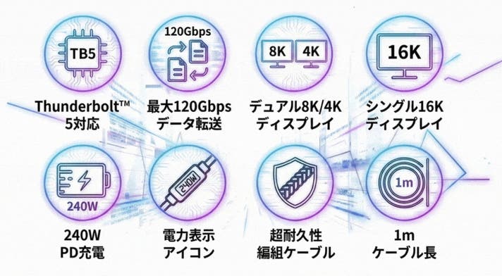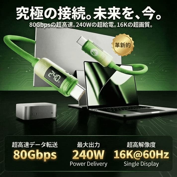 - 240W給電・80Gbps・16K対応で、1本で未来の作業環境へ。