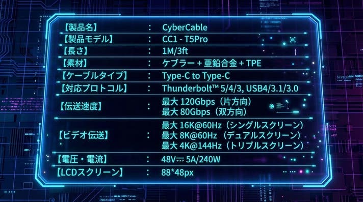 Thunderbolt™ 5 の帯域を活かし、CyberCable は