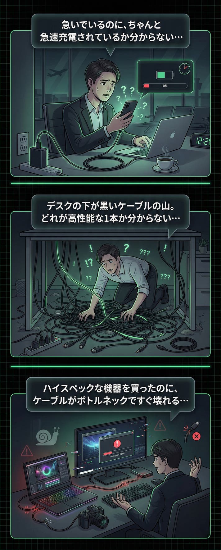 「せっかく高性能なPCと充電器を揃えたのに、ケーブルだけ古くて遅い…」