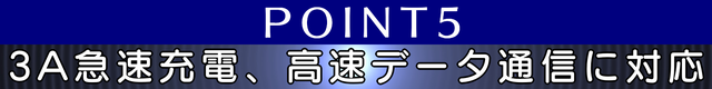 LED充電ケーブルは3Aの急速充電に対応。出力60WのACアダプターを使えば短時間でスマホのバッテリーを充電可能。