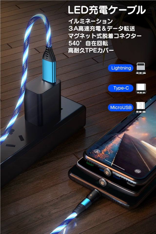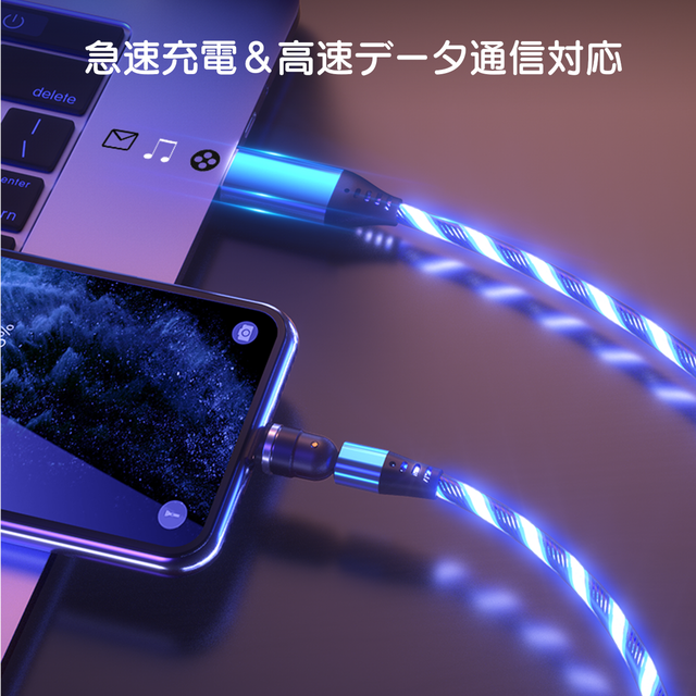 LED充電ケーブルはあなたのゲームシーンを盛り上げ、充電中のスマホやデバイスをを美しく電飾する見て楽しい、使って便利なUSBケーブルです。