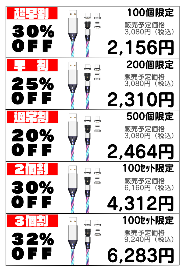 【2個セット】LED充電ケーブル2点