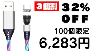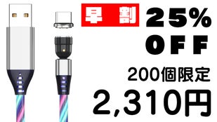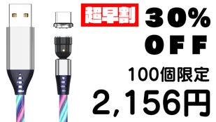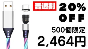 LED充電ケーブルはマグネット脱着式コネクターを採用。専用コネクターをスマホやゲーム機本体に差しっ放しにできるので、端子の摩耗を防ぎます。