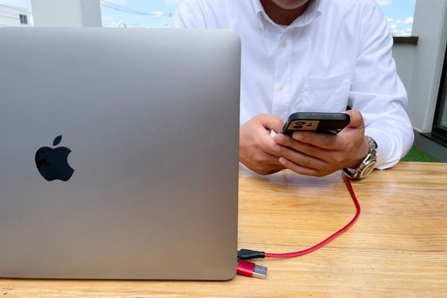 このケーブルを持てば、ノートパソコンだけではなく、タプレットやさらにType-C搭載の他の携帯からも自分の携帯へ充電が可能です。災害時や急ピンチの時に救われるかもしれません。