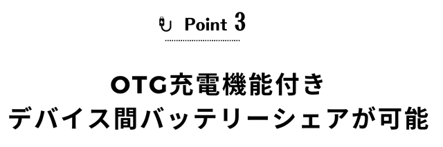 ※バッテリーシェア元となるデバイスはType-C搭載のパソコンやデバイスが前提です。