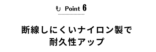 ケーブル表面はナイロン編みになり、断線しにくい仕組みとなっております。断線せず、長く使えます。