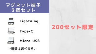 マグネット端子3種類(Lightning、MicroUSB、Type-C)