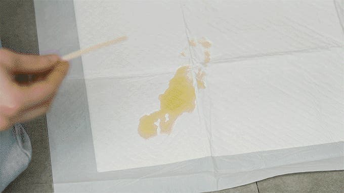 トイレシートを裏返すか、砂の上にラップを敷いて尿をため、チェックシートに少量つけてください。