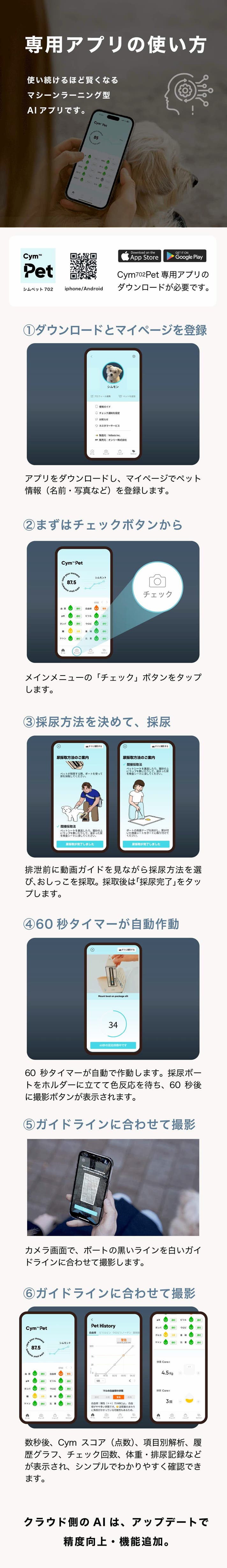 ・Cym702Petは 医療機器ではなく、健康管理をサポートするサービス です。動物病院での診察・検査の代替にはなりません。